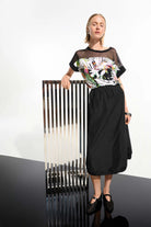 Joseph Ribkoff Silky Knit Tropical Print Straight Tunic With Mesh Insert-261643