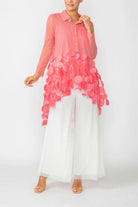 Ruffle High and Low Mesh Blouse 6471T-DUP