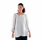 This floaty linen tunic with button detail sleeve makes great for everyday looks!