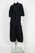 Step into effortless sophistication with this statement-making jumpsuit. Designed with voluminous balloon legs and gathered hems, it delivers a dramatic yet wearable silhouette. The collared neckline and three-quarter puff sleeves add a touch of tailored charm, while the wide, self-tie waist belt cinches your figure for a flattering shape. Crafted from lightweight, breathable fabric, this jumpsuit transitions seamlessly from daytime chic to evening glamour. Pair with heels for a polished look or flats for modern, relaxed elegance.