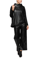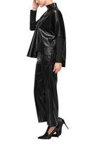 Tailored for elevated impact, these wide-leg faux leather trousers offer a structured fit with a smooth, lustrous finish. Effortlessly chic, they bring contemporary elegance to any day-to-night ensemble.