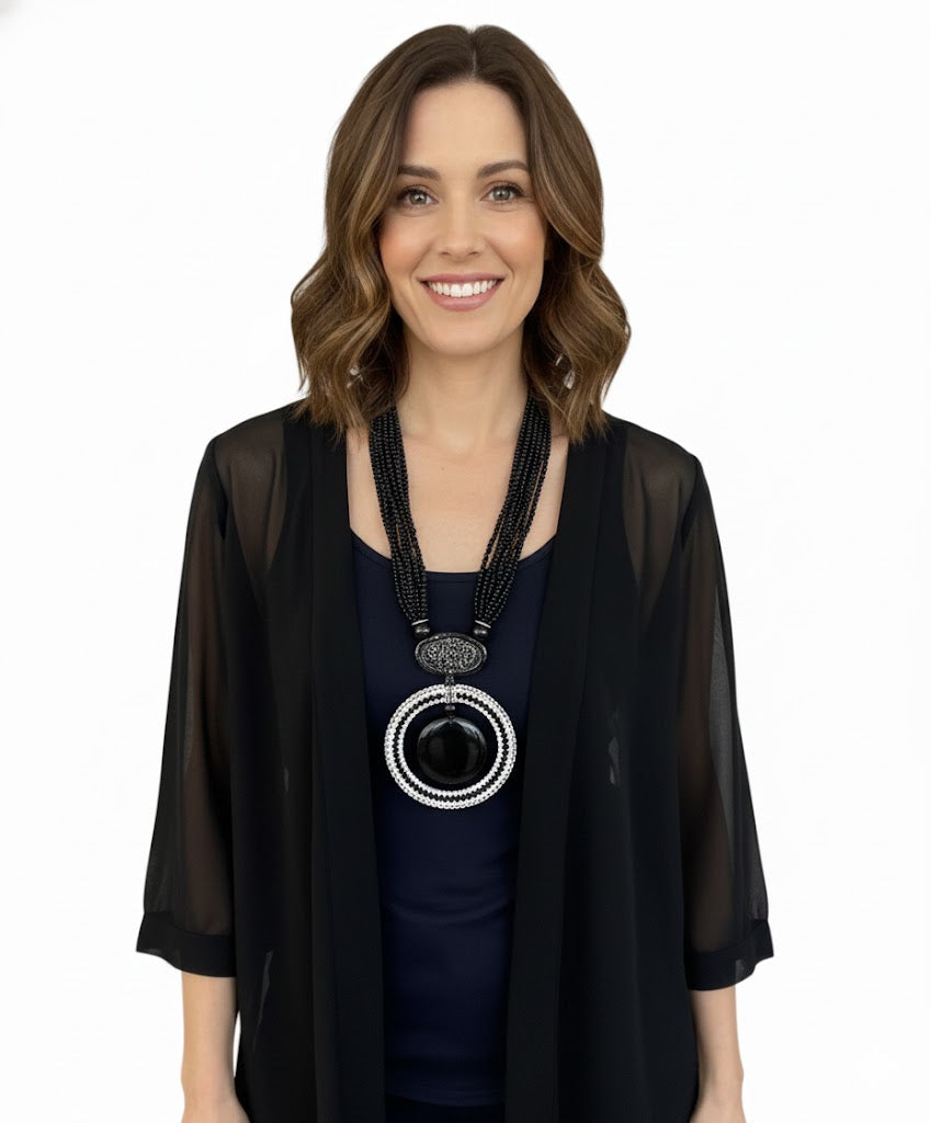 Necklace Sold Separately, See https://vilmasboutique.com/products/multi-strand-black-hole-necklace-nt1240