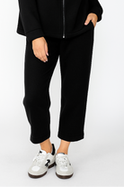 These cropped pants offer a relaxed, modern silhouette designed for all-day comfort. Made from a soft, structured knit fabric, they hold their shape while allowing easy movement. The mid-rise waist and straight, slightly wide leg provide a flattering fit, and the gently cuffed hem adds a polished finish. Versatile and effortless, these pants pair well with casual tops, oversized layers, or athleisure pieces—perfect for everyday wear, travel, or relaxed weekends.