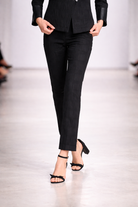 These are sleek, tailored black pants with a refined, modern edge.