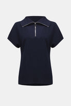 Effortlessly modern, this seersucker trapeze top features a structured memory collar and a zippered neckline, balanced by soft dolman sleeves for easy movement.