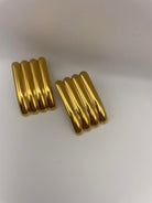 These earrings feature a bold and modern design with multiple smooth, elongated gold-tone bars arranged side by side. Their high-polish finish gives off a mirror-like shine, creating a luxurious and eye-catching effect. The structured, geometric look makes them a perfect statement accessory, ideal for elevating both formal and contemporary outfits.