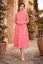IC Collection Mesh Sleeve Petal Dress 6472D