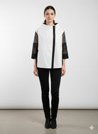 Make a bold statement with this fashion-forward jacket that combines contemporary design with effortless sophistication. The Sun Kim Frida Jacket features a striking tri-color palette of vibrant chartreuse, crisp white, and classic denim that creates an eye-catching, modern aesthetic.