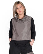 This sleeveless topper in memory fabric features a wire collar that can be adjusted to your liking. Due to its short length, this piece gives off a relaxed but stylish look and is great for layering. Pairs perfectly with our Sun Kim Monet Pocket Pants-ME216 as show in the pictures!
